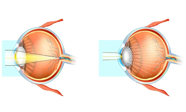 Đục thủy tinh thể rất phổ biến, đặc biệt ở người lớn tuổi. Sự tích tụ protein trong mắt của bạn ngăn ánh sáng đi qua thủy tinh thể một cách chính xác, khiến thị lực kém rõ ràng và mờ dần – triệu chứng có xu hướng xấu đi theo thời gian. Bệnh nhân mô tả cảm giác như nhìn qua một khung cửa sổ bám bụi. Nếu đục thủy tinh thể quá nghiêm trọng, một lớp màng màu xám đục có thể dễ dàng nhận thấy qua mắt của bạn khi soi gương.
