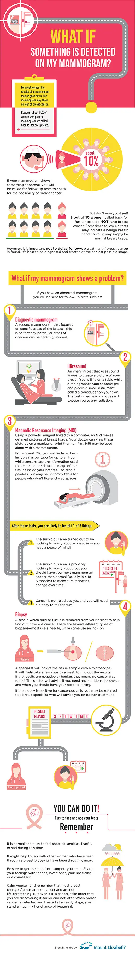 如果您的乳房 X 线照片显示异常,您就需要进行后续检查,以确定发现的是否是乳腺癌。